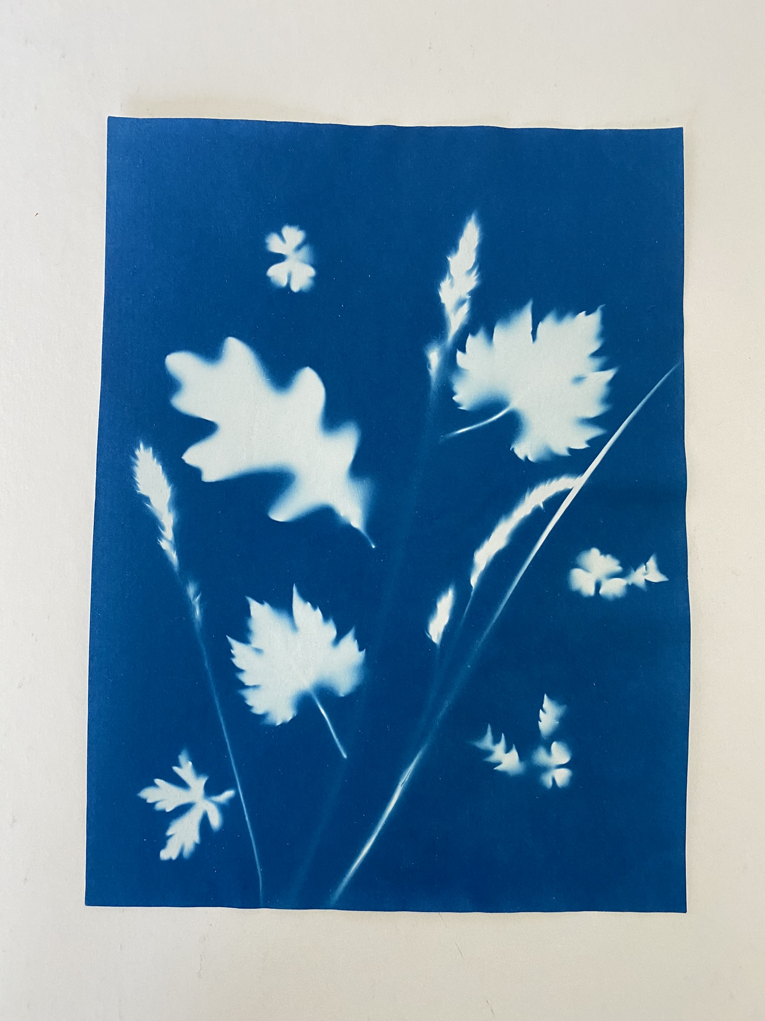 Sunprints are a form of cyanotype. Cyanotypes involve treating paper with a chemical solution and then exposing that paper to UV light. They are an old form of developing photographs that morphed into also being used for photograms. Photograms involve placing objects on the chemically treated paper instead of photographic negatives. I thought I would experiment with Sunprints first to determine if I wanted to dive deeper (and not surprisingly I did). You’ll often seen Sunprints referenced as a children’s activity, perfect for me and how I was approaching this rabbit hole. Its also a cost effective way to dip in and try it and then determine if you want to invest more into creating cyanotypes.