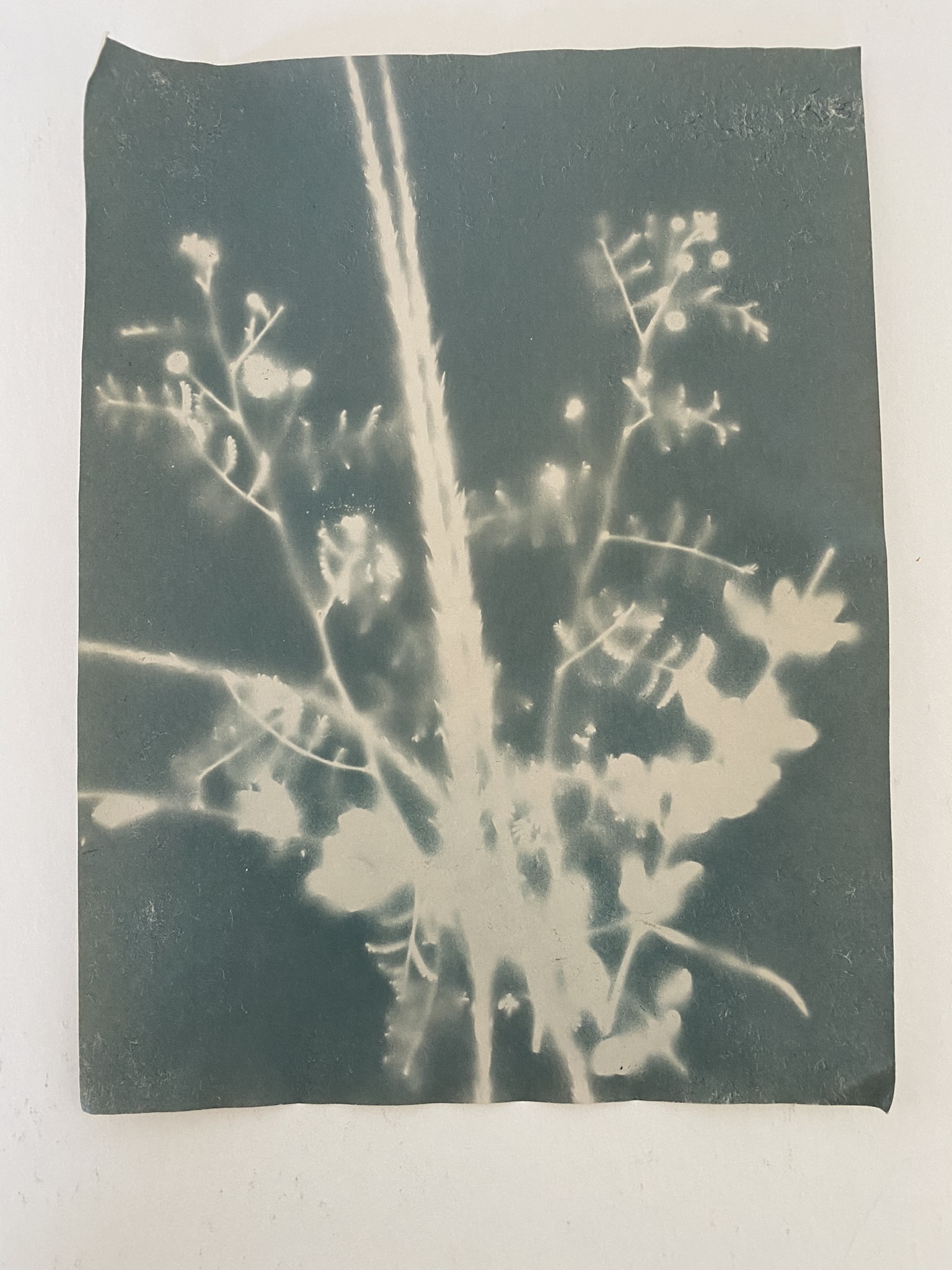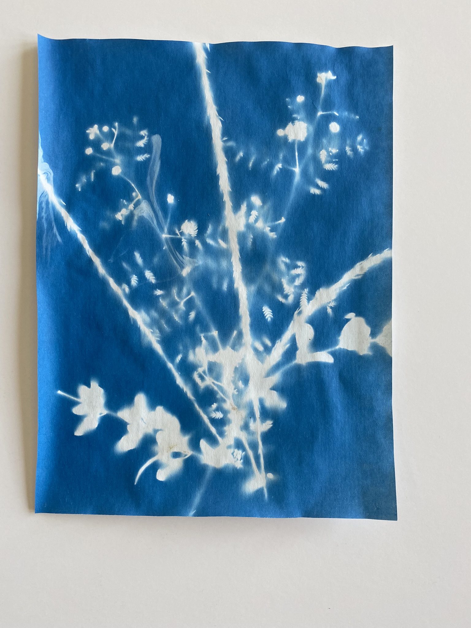 Sunprints are a form of cyanotype. Cyanotypes involve treating paper with a chemical solution and then exposing that paper to UV light. They are an old form of developing photographs that morphed into also being used for photograms. Photograms involve placing objects on the chemically treated paper instead of photographic negatives. I thought I would experiment with Sunprints first to determine if I wanted to dive deeper (and not surprisingly I did). You’ll often seen Sunprints referenced as a children’s activity, perfect for me and how I was approaching this rabbit hole. Its also a cost effective way to dip in and try it and then determine if you want to invest more into creating cyanotypes.