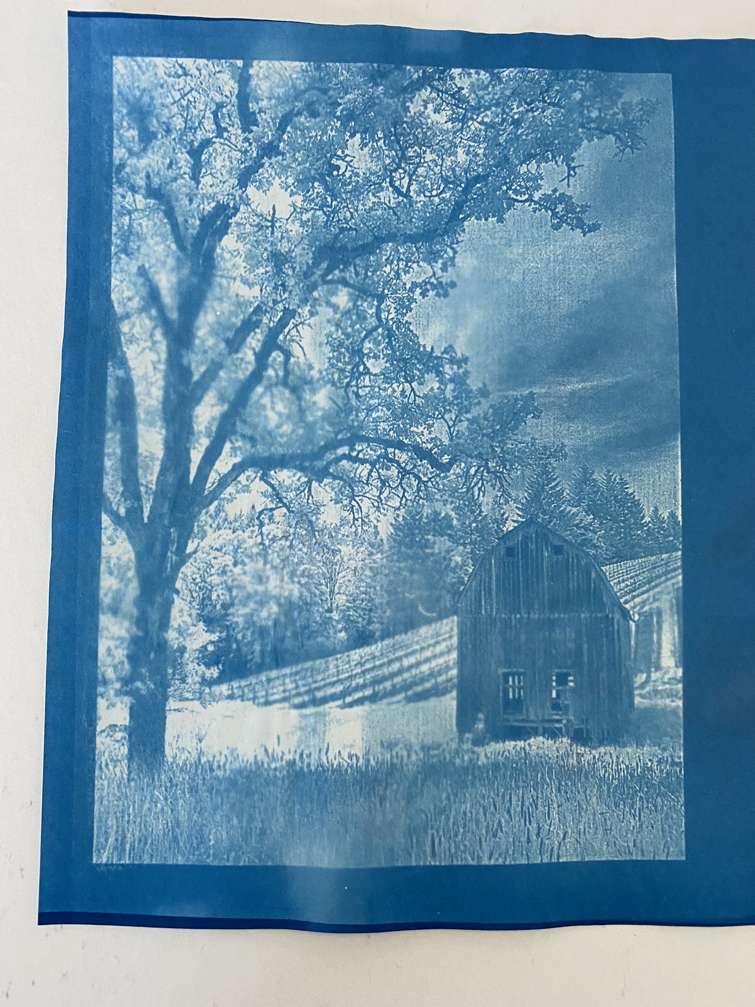 A few months ago I dove down a new rabbit hole to explore alternative processes and treatments for my photographs. It started with photo encaustic (more on that in the future), then morphed into cold wax and oil applications to my images (another later installment), then I thought I would try Sunprints (today’s post) as a treatment to apply to my photo encaustic work, and now I’m burrowing even deeper to cyanotype printing (who knows when I will be in a place to share that). So today, I’m starting with Sunprints. Its addictive and fun to do with anyone, photographer or not, young or old, the only requirement is a “what about” attitude. When I first ran across Cyanotypes years ago, I thought it was too hard and “why would I”? Don’t be intimidated by the chemicals, its not as hard as it looks (well, I haven’t quite cracked the “creating a digital negative” part, so I might amend this statement later).