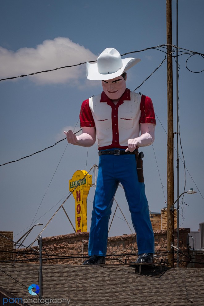 Mary and I have been informally photographing “muffler men” that we have come across for years, without starting an actual project or chase to photograph all of them. There are approximately 180 known muffler men. This cowboy is at John’s Used Cars on Route 66 in Gallup, New Mexico.
