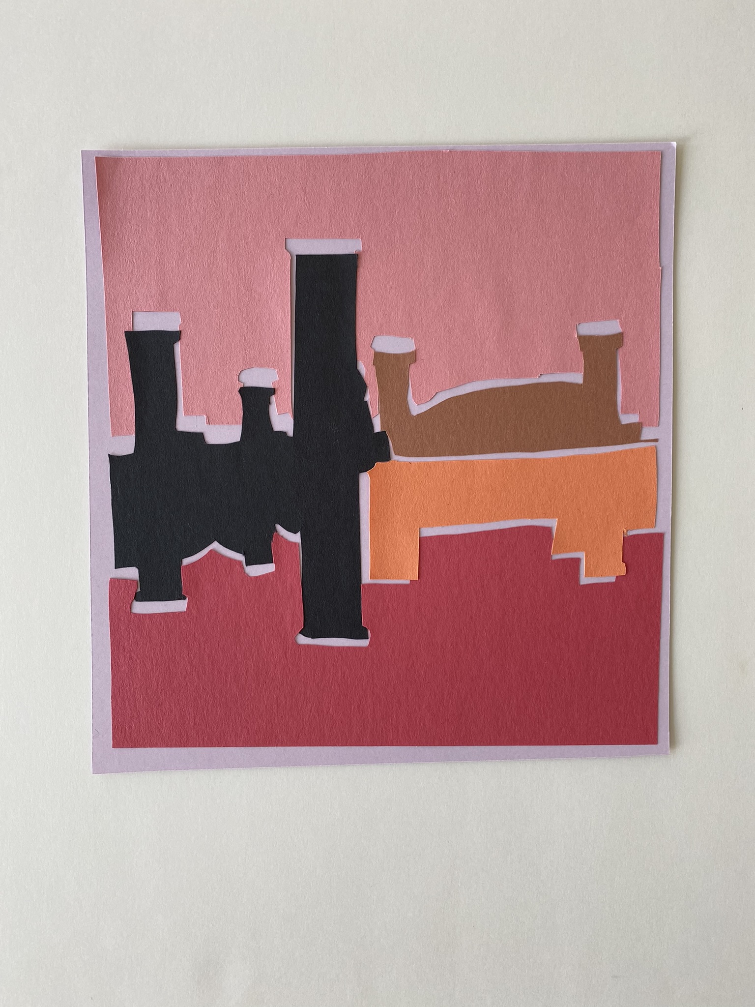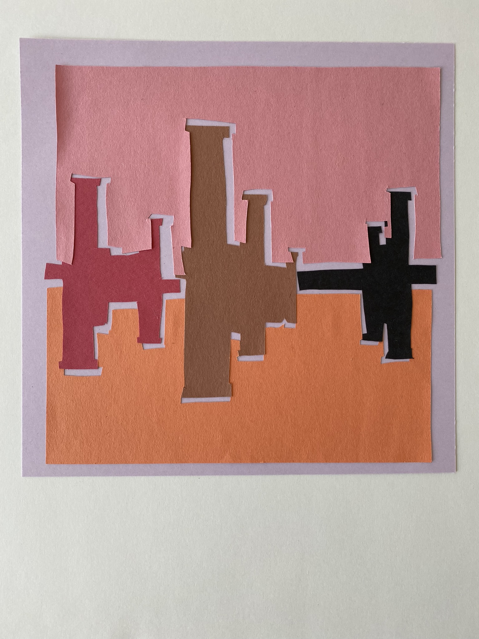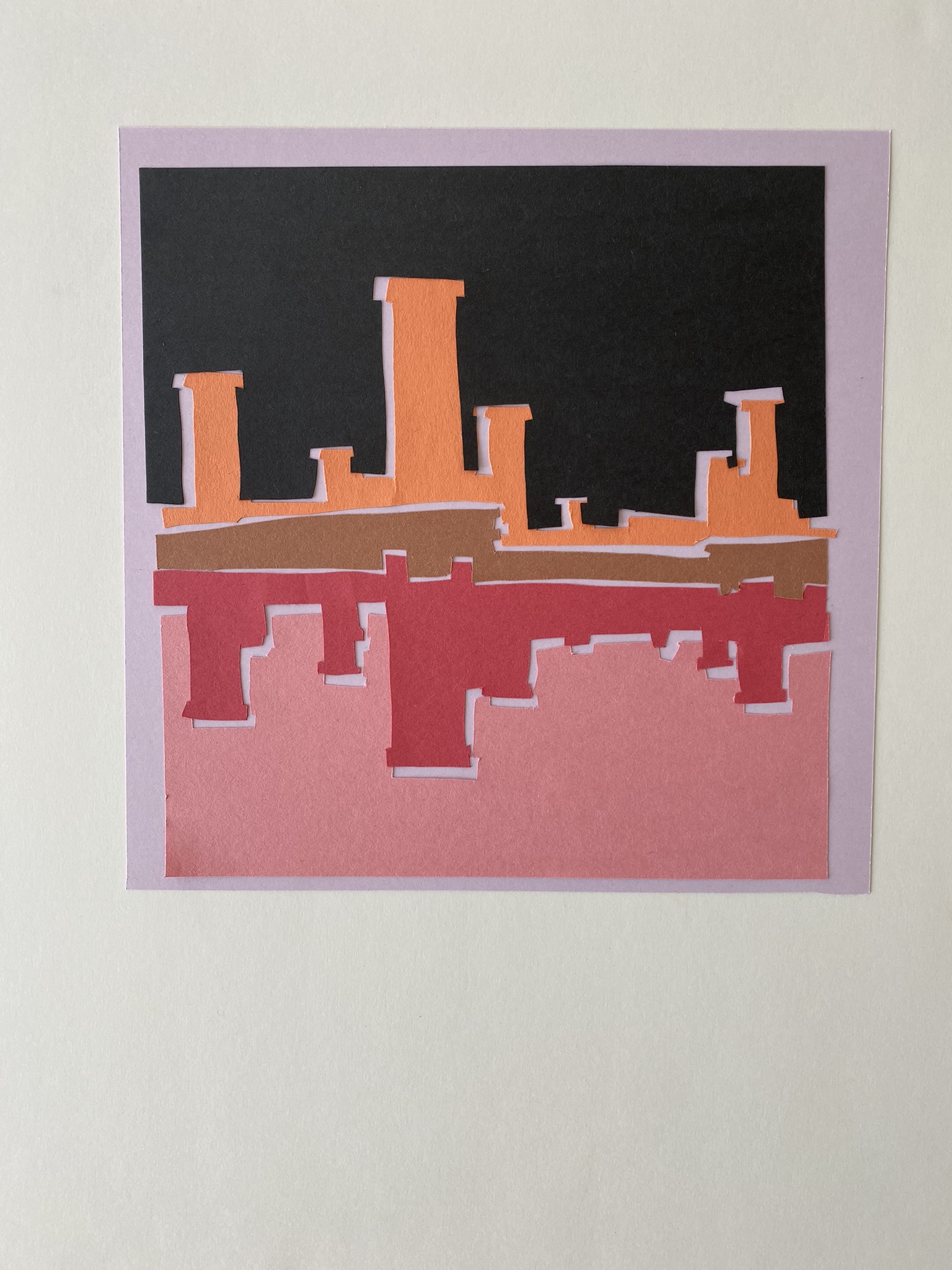 What I would do differently: Next time, I would pick a photo with less detail, and a balance of horizonal and vertical shapes. I the photograph I used the vertical shapes were dominant in every version of the collage. I would also try it with subtler and more natural colors. Although, I did have a difficult time finding construction paper that was not in the same basic color palette, and I found cardstock too tough to cut.