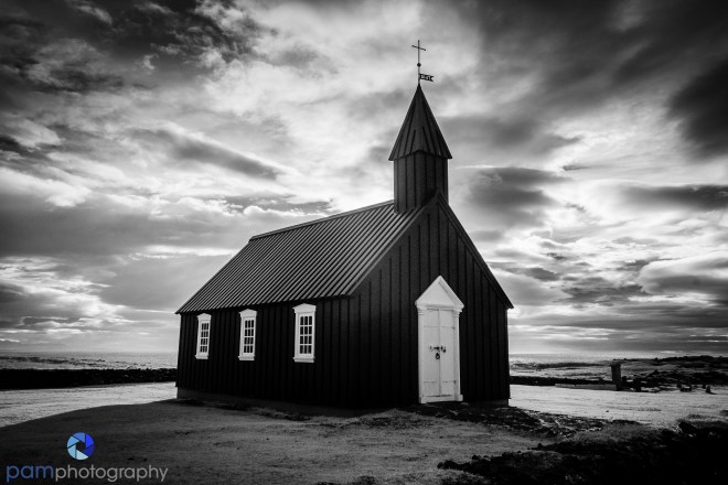 I was looking forward to photographing this church all trip long, as it was our last stop. The first time we came to it, there was some kind of ceremony going on and could not photograph it. The next day was a raging rain storm, and though I did get out of the car, the photos were not very good. Finally, on our last day in Iceland as we were driving to the airport, I captured something I liked.