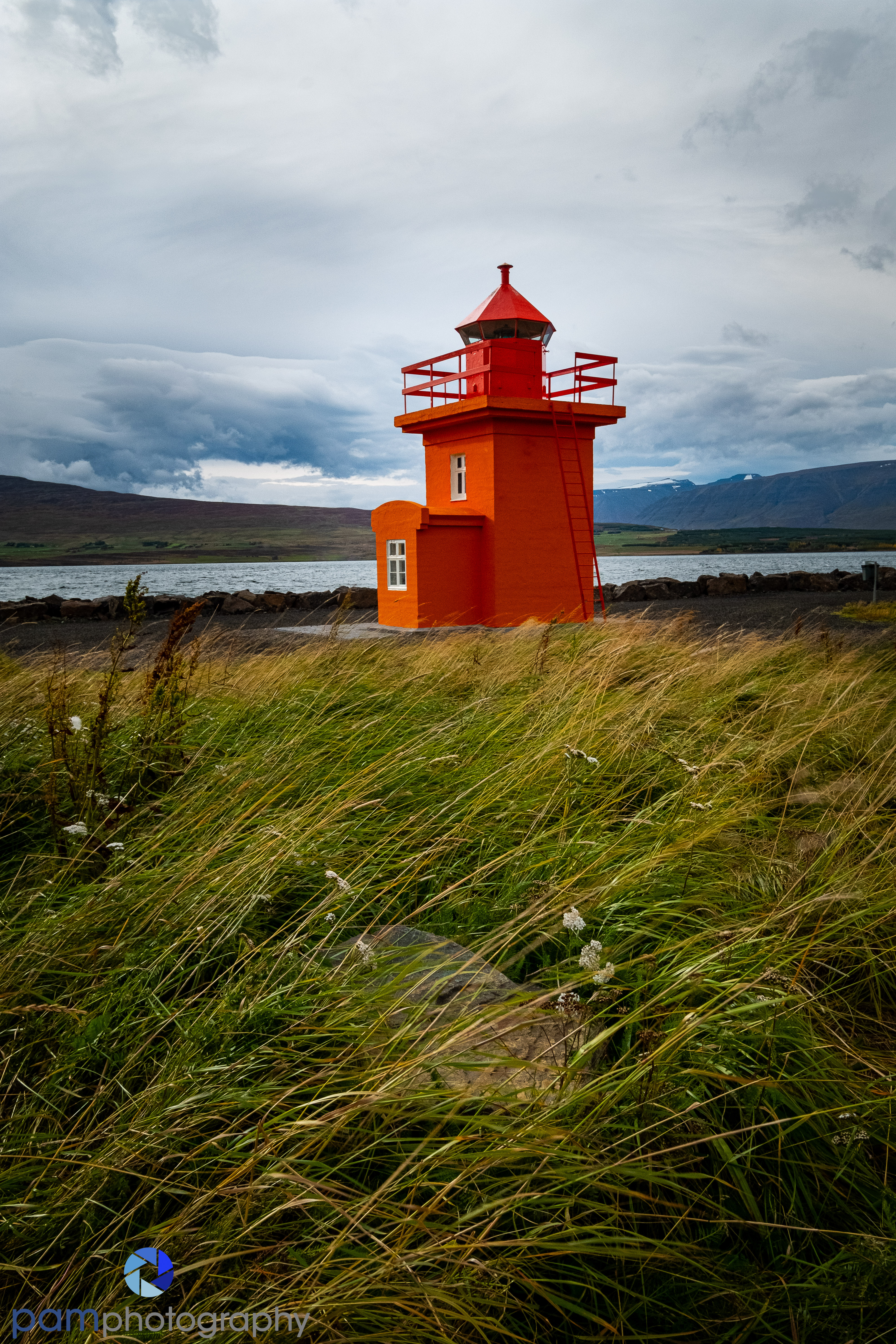 We saw a lighthouse and a church on our map as we were making our way to Siglufjordur and decided to find them. We just laughed as we drove up to this lighthouse because it was only two stories high and quite unimpressive in size. However, I just kept walking around it because I just loved the color. It was also windy, so when I found this composition, I was thrilled.