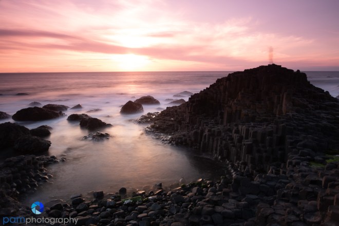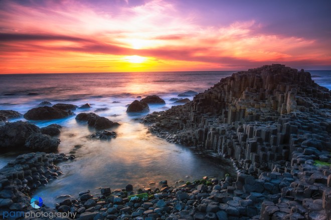 The Giant’s Causeway is the result of a a volcanic eruption that created about 40,000 interlocking basalt columns about the size of an American football field. It is located in Northern Ireland near the town of Bushmills and was declared a World Heritage site in 1986. It is a very popular tourist attraction with over a million visitors a year. It’s pretty awesome to see, but can be a challenge to photograph. Here’s how I made this photo.