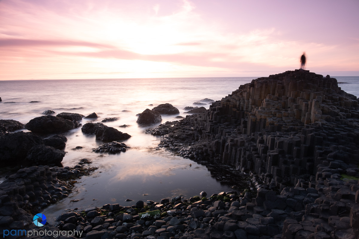 The Giant’s Causeway is the result of a a volcanic eruption that created about 40,000 interlocking basalt columns about the size of an American football field. It is located in Northern Ireland near the town of Bushmills and was declared a World Heritage site in 1986. It is a very popular tourist attraction with over a million visitors a year. It’s pretty awesome to see, but can be a challenge to photograph. Here’s how I made this photo.