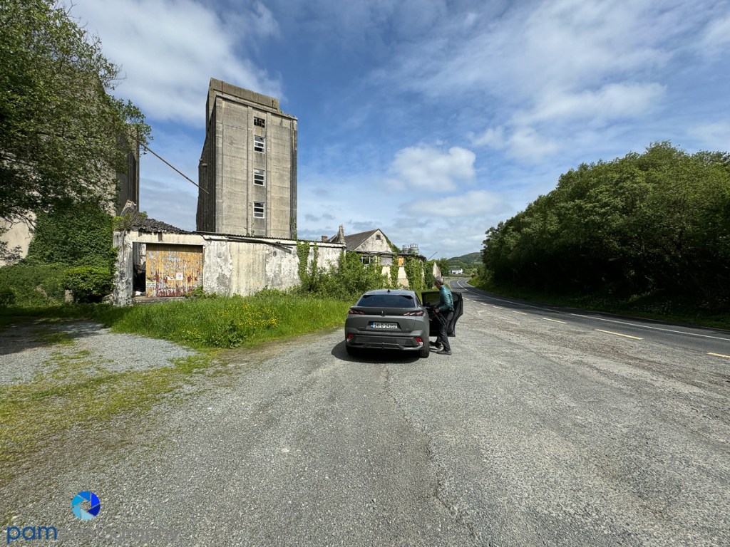 Sabrina was hidden behind the Fairytales Daycare Center off of R246, 2 kilometers north of Milford which is about an hour northwest from Londonderry, UK (Northern Ireland). We drove back and forth a couple of times looking for a way to the bay. We parked in the obvious pullout, but could not see anything. Just south of the pullout was a huge abandoned derelict factory building with trash and old mattresses strewn about. There was a Danger sign, but no signs that said Keep Out or No Trespassing. We followed the trash trail towards the bay.