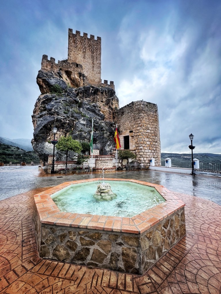 In the teeny, tiny, little town, Zuheros, perched on a hillside, there was…..get ready for it…..a castle. Now our castle crazed photographer had quite the dilema yesterday afternoon. Does he brave the 30 mph sideways gusting wind and torrential sideways rains to climb an exposed ruin? Or does he crawl into a warm bed layered with blankets and finish his movie? It was a good thing, that one of us hasn’t reached full fluffy bunny status yet (I’m speaking of myself, because, well, I am writing this). I kept a watch on the rain, and in a rare window of 12 minutes (9 if you ask Peter), it stopped. Peter, Mark and I raced toward the ruins, climbed all around them, almost got blown off the top a few times (it stopped raining, but it was still super windy), and then raced back to the hotel (the castle was only a 3 minute walk away). All of this happened within less than 20 minutes. The castle provided great views of Zuheros and the surrounding countryside, and I’m sure it would be even more amazing on a clear day.