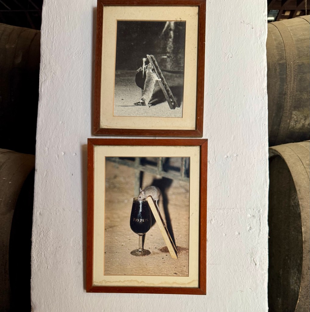 But the weirdest thing about the tour was the sherry drinking mouse. Or now mice because they all come over from the cathedral next door. A farmer for the bodega noticed a mouse drinking their highest alcohol content sherry wine. So instead of shooing the uninvited guest away, he not only set out a full glass for him, but also created a ladder to make it easier to access the elixir. This seemed to be enough for him to get to sign a cask. I’m really hoping that now, it’s just a story and a marketing gimmick, and they don’t set out a new glass of wine each day just for the wine enthusiastic rodents to drink. Although I would like to see them “walk” back to the church after.