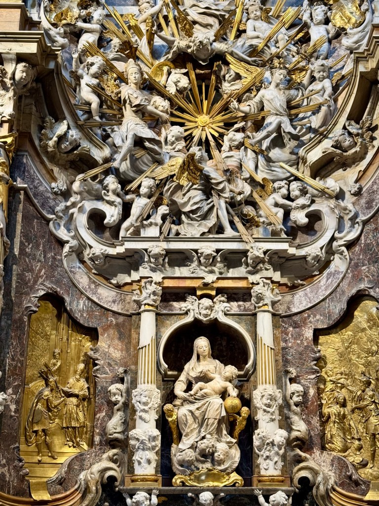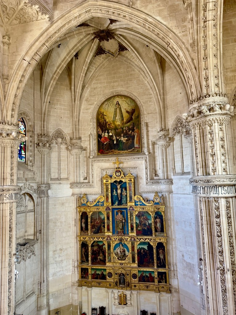 We can’t visit a historic Spanish city without seeing a cathedral, so we stopped at The Primate Cathedral of Saint Mary of Toledo (I’m really loving that Mary gets a lot of attention in Spain). This gothic cathedral was majestic, with fewer people than the one we saw in Sevilla (thank goodness). Behind their version of the golden bible alter, there was a Baroque style alter that, at the right time of day at the right time of year, it lets sunbeams through behind the golden alter to illuminate the Eucharist cross.