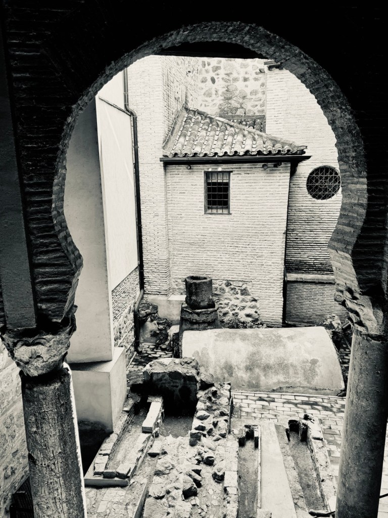 After walking through the old entrance arch, our first stop was the oldest mosque in Spain, dated from 999, Cristo de la Luz. It was repurposed into a Catholic Church in 1085. It has remained largely unchanged. I was struck by the red and white arches on the outside which were similar to those in Cordoba. They must have had the same designer, or it was a trend of the time…..