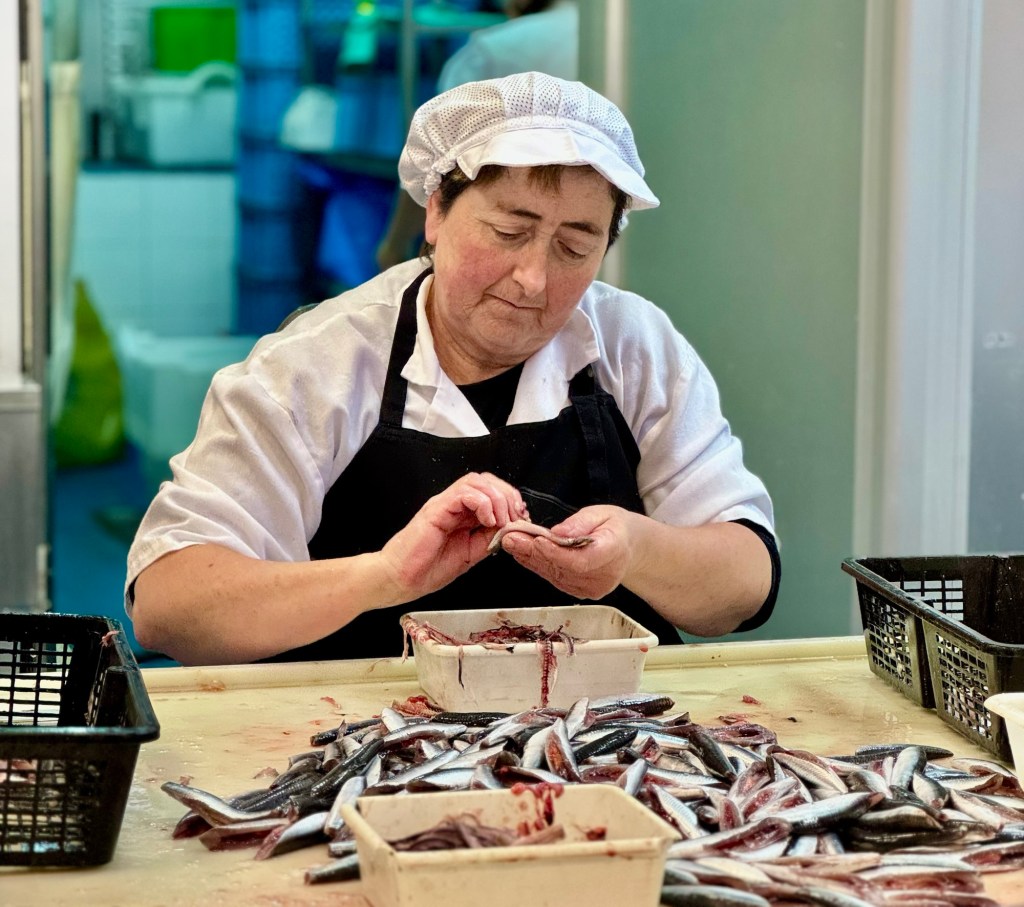 Ellie met us again this morning for a tour of some of the little villages along the coast. The rain followed us, AGAIN, so we had to improvise. Because we are at the height of anchovy season, we used this as an opportunity to learn about anchovy production. Forget about the canned anchovies you can get at home, this delicacy comes in every incarnation you can imagine. The jars of refrigerated fish are highly coveted.