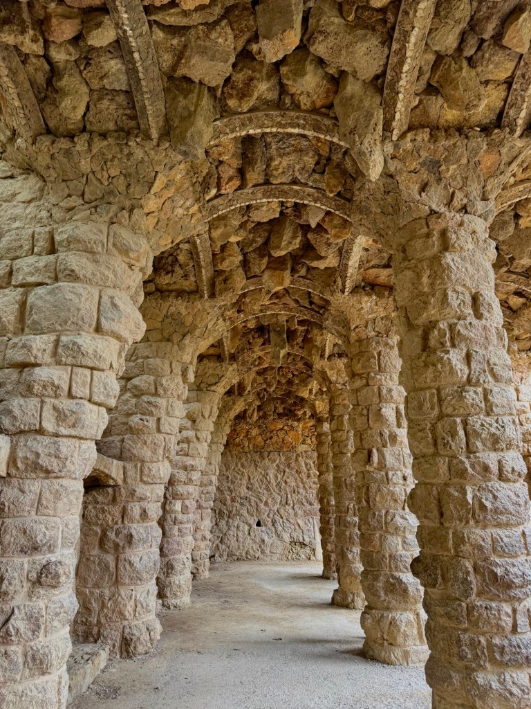 But the history isn’t what makes this place so crazy, it’s the infrastructure Gaudi created to support the communal like feel of the town. There were three radically different, two-story viaducts you could drive on top, and stroll underneath. And this wouldn’t be like taking an ordinary Sunday stroll. One was like walking through the rip curl of a wave, the other was a little more terrifying, like walking through a rock tunnel with boulders precariously hanging like they were going to drop from the ceiling.