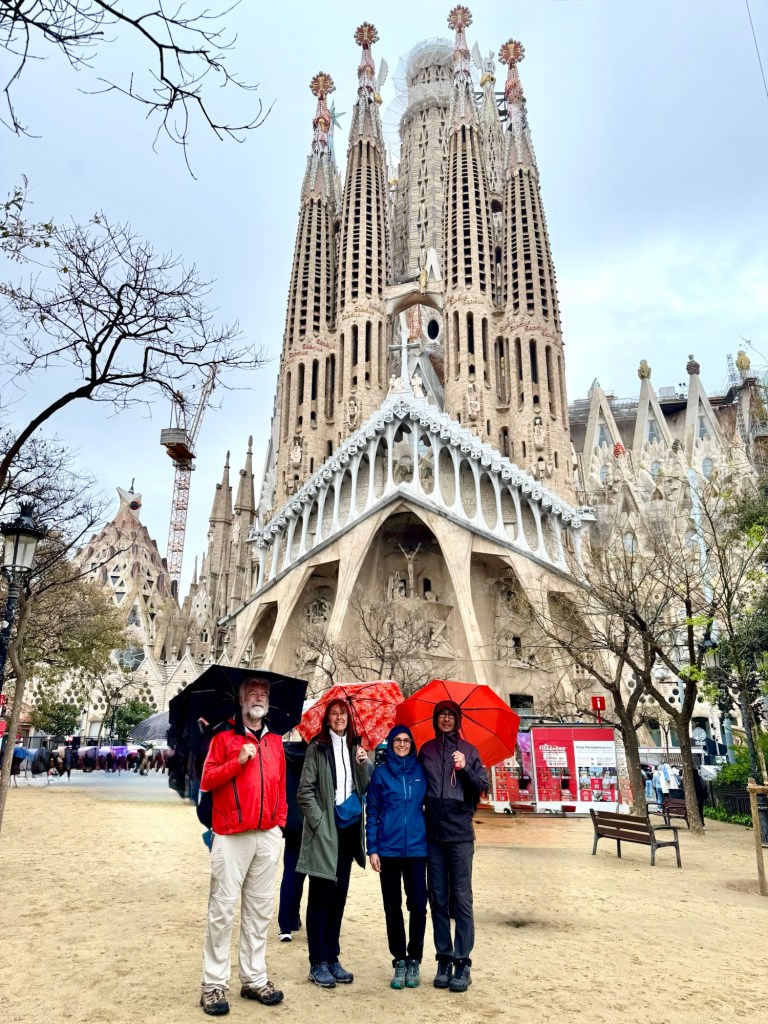 Our next stop was a UNESCO World Heritage site, The Sagrada Familia. It’s a church that was started in 1882, and is scheduled to finish next year, 150 years later, (people say this with their fingers crossed and a smile). When I walked through it 30 years ago, the front and back entries to the church were built, there were the basic structures for the 4 walls, and couple of towers were finished. There was no roof, it was open to the sky, the floor was dirt, and you walked on construction platforms around the building equipment and cranes that were scattered around the inside. Back then, there were debates as to whether it would ever be completed, because people were arguing over how to interpret Gauid’s vision (he was run over by a tram when less than 25% of the church was complete), and of course, there was the question of who was going to pay for it. I mentioned my visit 30 years ago to our guide, and she said “back then, no one came, only a handful of Americans that read about it in a tourist book”. Yep, that was me, and about 3 other people who had Rick Steves book. We were all there standing in the dirt trying to imagine what it would look like when it was done.