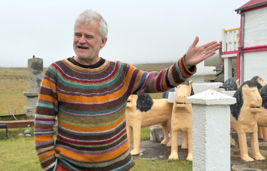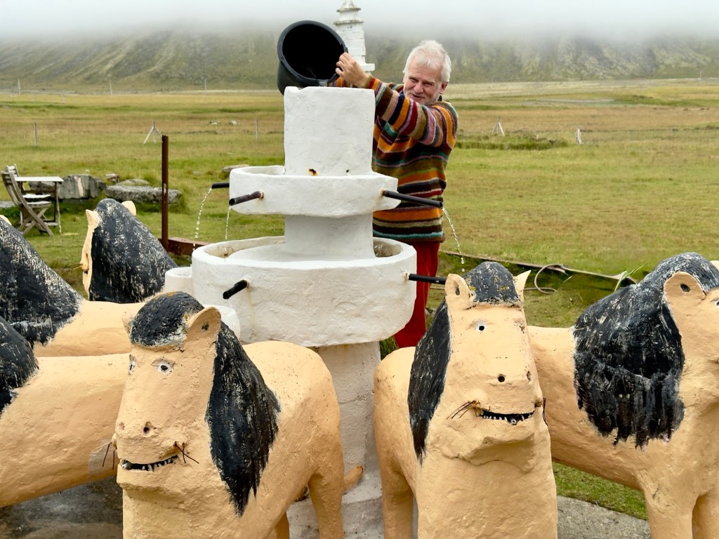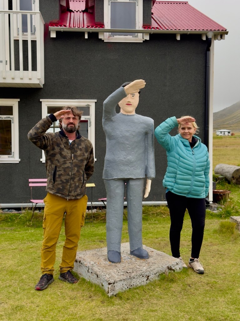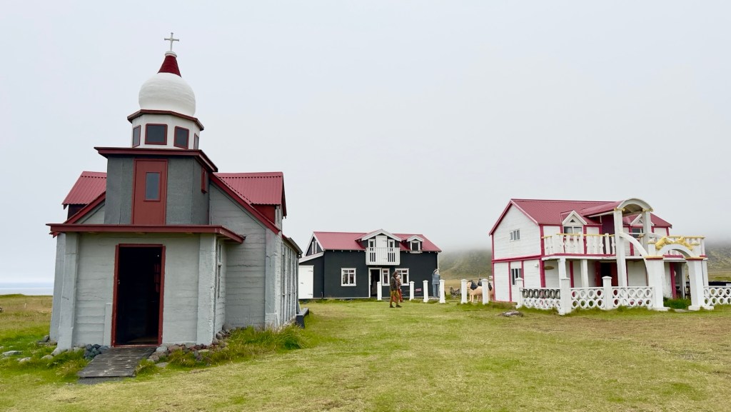 We spent a delightful hour exploring the Samuel Jonsson Art Museum. Samuel is called “The Artist with a Child’s Heart”. He decided that if no one appreciated his art, he would build his own museum. And when the local church rejected an alter piece he spent three years making for them, he built his own church too. That altarpiece is in a museum in Reykjavik and will return when the restoration efforts are complete. I admire his confidence and conviction.