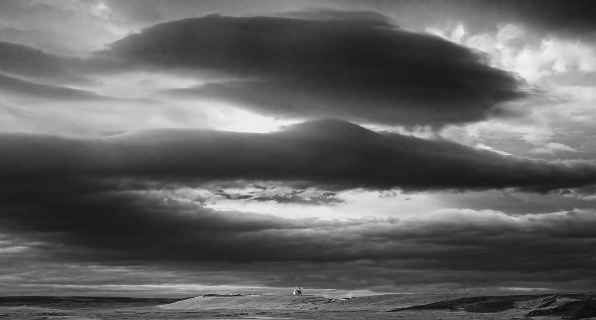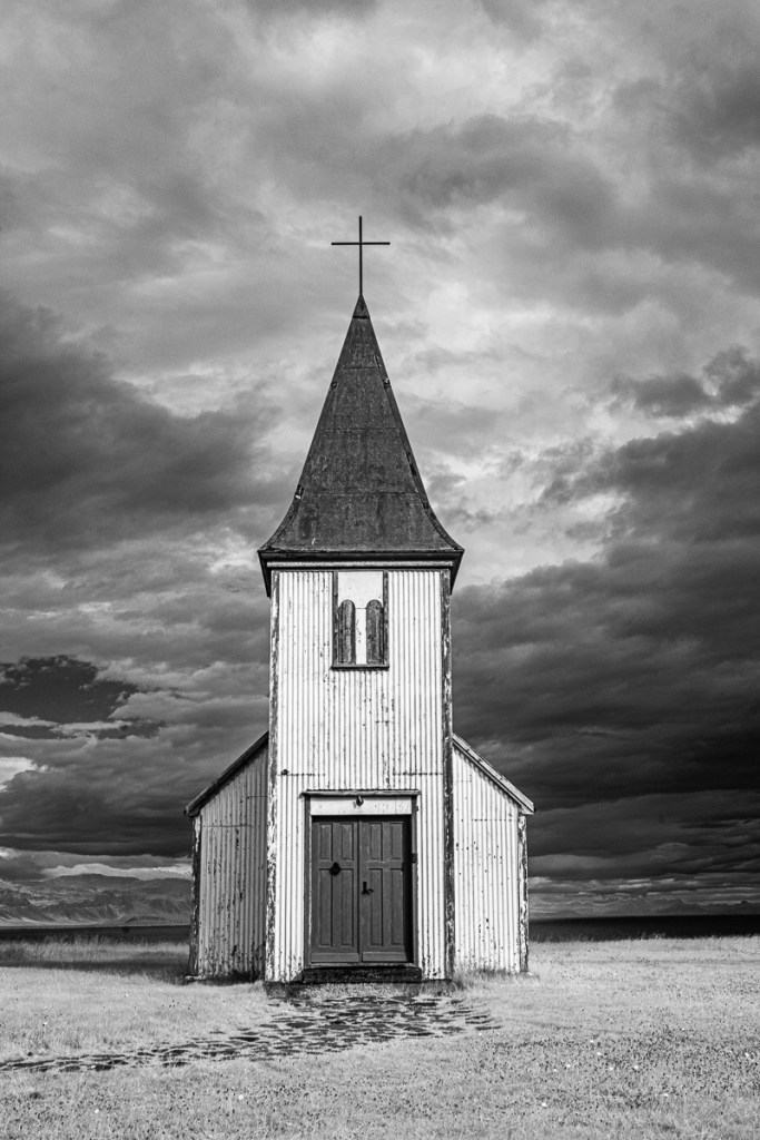 Peter is drawn to the lighthouses and waterfalls in Iceland. I am drawn to the amazing skies which seem to dwarf the humble features of the land below. The isolation of a single structure under the menacing storm clouds above spoke to me about perseverance and quiet strength of Iceland.