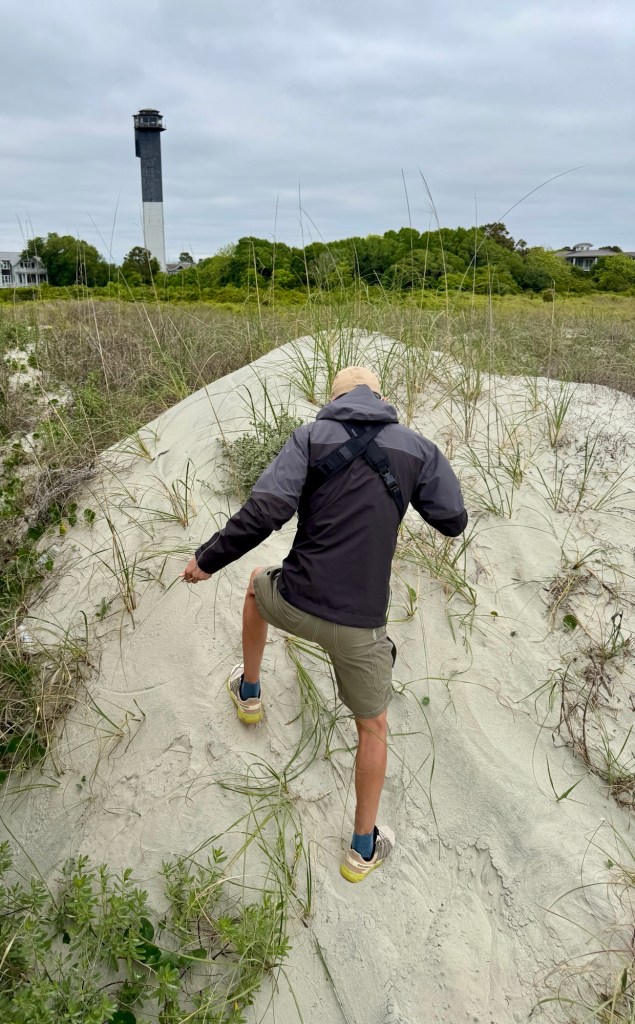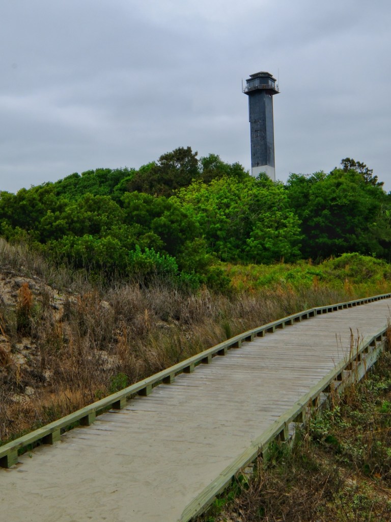 Sullivan’s Island was our next stop. It is home to one of the ugliest lighthouses I’ve ever seen. When I suggested as much to Peter, he looked appalled. I guess in his mind all lighthouses are beautiful. Its unusual shape at the top is to help it withstand hurricane force winds. Which made me ponder “the wind gets worse than this?”